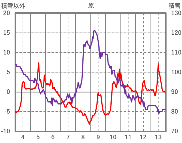 | 日 | 時 | 気温 | 降水 | 風向/風速 | 日照 | 積雪 | 降雪 |