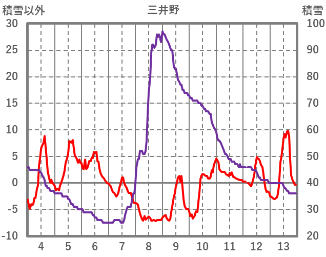 | 日 | 時 | 気温 | 降水 | 風向/風速 | 日照 | 積雪 | 降雪 |