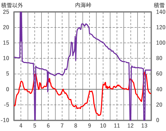 | 日 | 時 | 気温 | 降水 | 風向/風速 | 日照 | 積雪 | 降雪 |