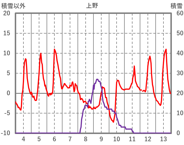 | 日 | 時 | 気温 | 降水 | 風向/風速 | 日照 | 積雪 | 降雪 |