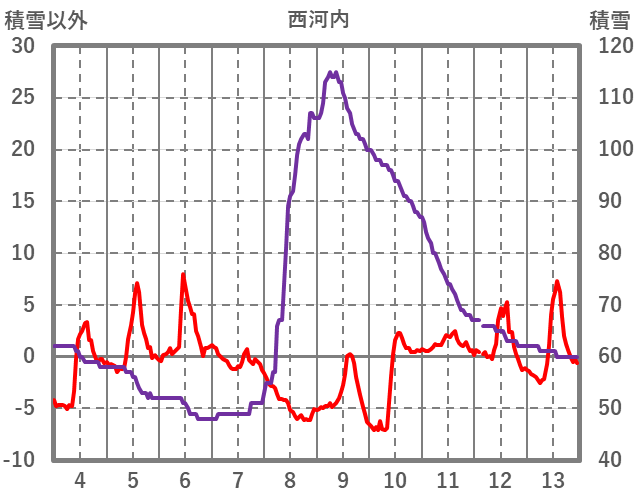 | 日 | 時 | 気温 | 降水 | 風向/風速 | 日照 | 積雪 | 降雪 |