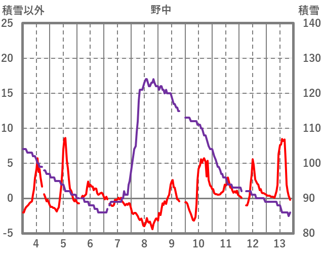 | 日 | 時 | 気温 | 降水 | 風向/風速 | 日照 | 積雪 | 降雪 |