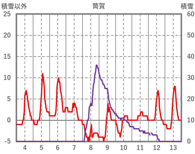 | 日 | 時 | 気温 | 降水 | 風向/風速 | 日照 | 積雪 | 降雪 |