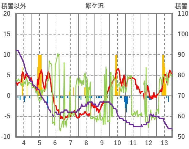 | 日 | 時 | 気温 | 降水 | 風向/風速 | 日照 | 積雪 | 降雪 |