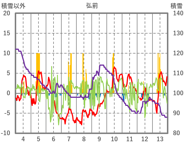 | 日 | 時 | 気温 | 降水 | 風向/風速 | 日照 | 積雪 | 降雪 |