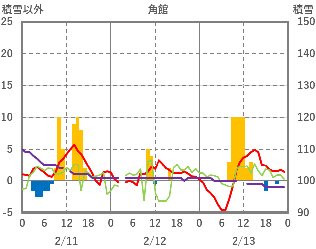 | 日 | 時 | 気温 | 降水 | 風向/風速 | 日照 | 積雪 | 降雪 |