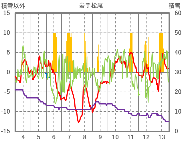 | 日 | 時 | 気温 | 降水 | 風向/風速 | 日照 | 積雪 | 降雪 |