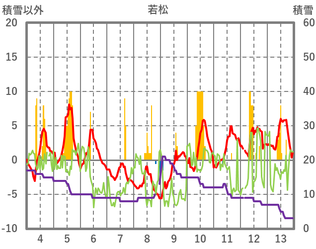 | 日 | 時 | 気温 | 降水 | 風向/風速 | 日照 | 積雪 | 降雪 |
