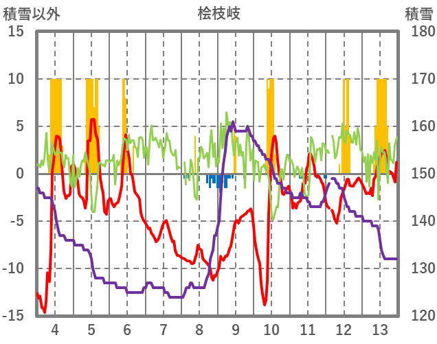 | 日 | 時 | 気温 | 降水 | 風向/風速 | 日照 | 積雪 | 降雪 |