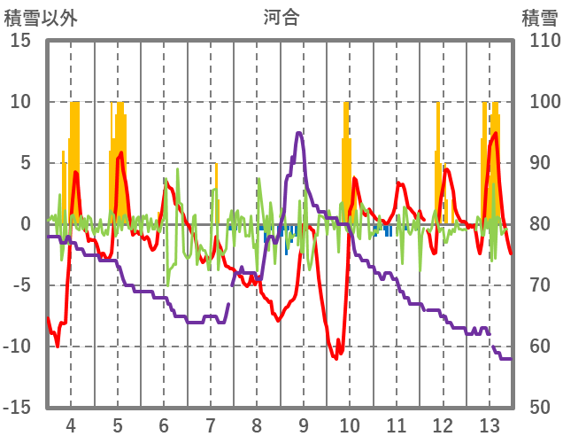 | 日 | 時 | 気温 | 降水 | 風向/風速 | 日照 | 積雪 | 降雪 |