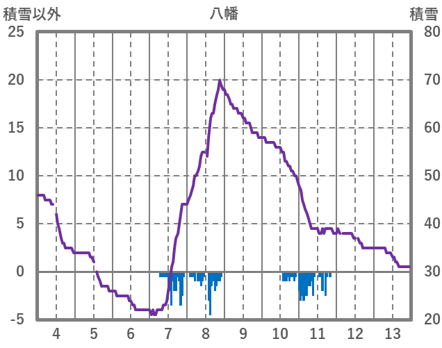 | 日 | 時 | 気温 | 降水 | 風向/風速 | 日照 | 積雪 | 降雪 |