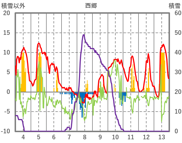 | 日 | 時 | 気温 | 降水 | 風向/風速 | 日照 | 積雪 | 降雪 |