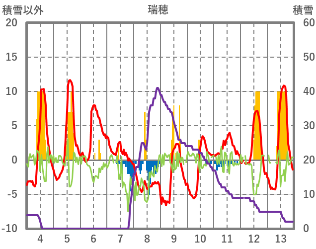 | 日 | 時 | 気温 | 降水 | 風向/風速 | 日照 | 積雪 | 降雪 |