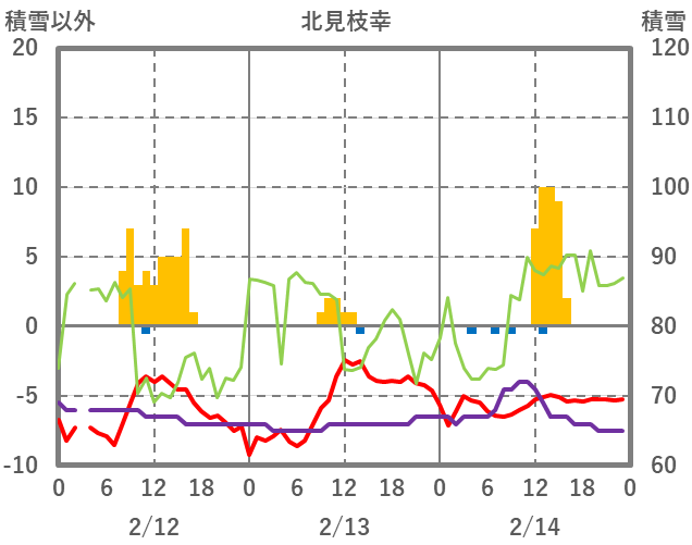 | 日 | 時 | 気温 | 降水 | 風向/風速 | 日照 | 積雪 | 降雪 |