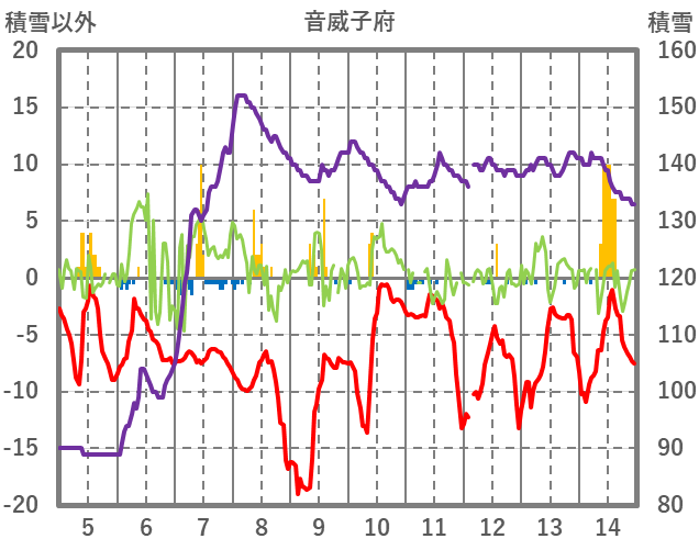 | 日 | 時 | 気温 | 降水 | 風向/風速 | 日照 | 積雪 | 降雪 |