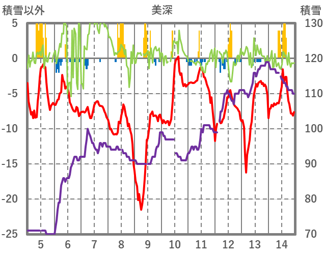 | 日 | 時 | 気温 | 降水 | 風向/風速 | 日照 | 積雪 | 降雪 |