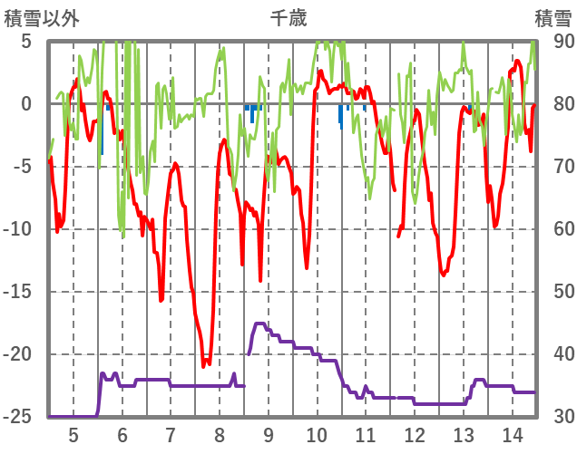 | 日 | 時 | 気温 | 降水 | 風向/風速 | 日照 | 積雪 | 降雪 |