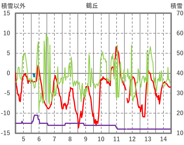| 日 | 時 | 気温 | 降水 | 風向/風速 | 日照 | 積雪 | 降雪 |