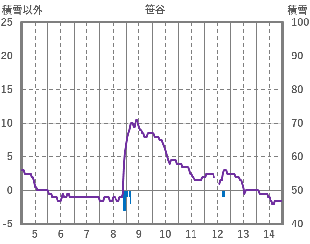 | 日 | 時 | 気温 | 降水 | 風向/風速 | 日照 | 積雪 | 降雪 |