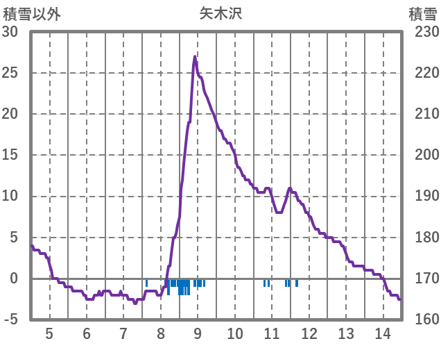 | 日 | 時 | 気温 | 降水 | 風向/風速 | 日照 | 積雪 | 降雪 |