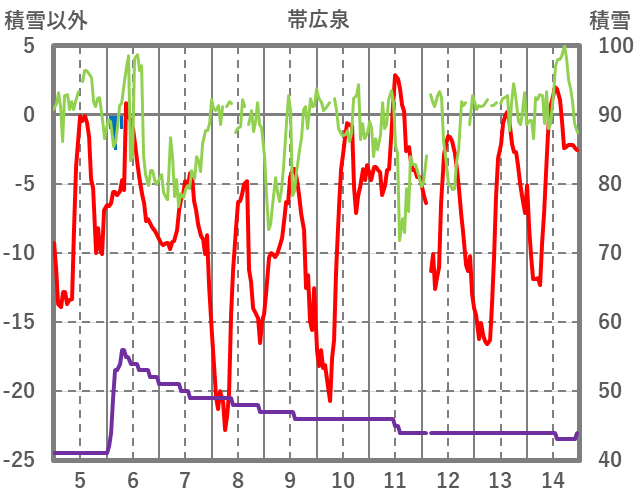 | 日 | 時 | 気温 | 降水 | 風向/風速 | 日照 | 積雪 | 降雪 |