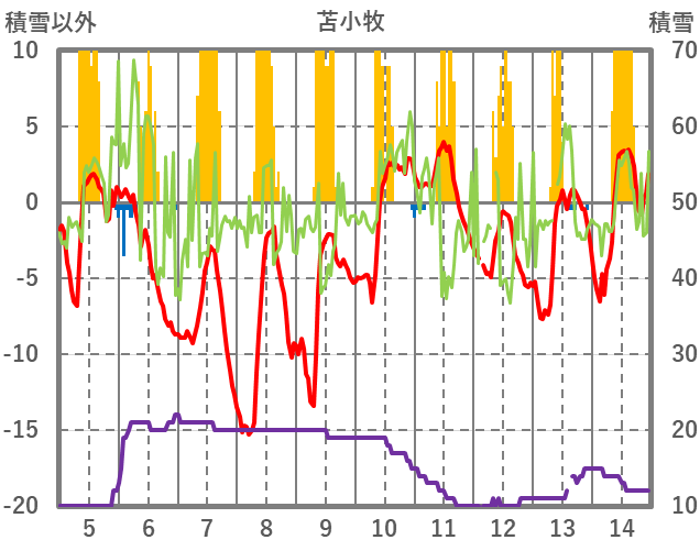 | 日 | 時 | 気温 | 降水 | 風向/風速 | 日照 | 積雪 | 降雪 |