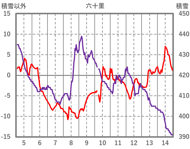 | 日 | 時 | 気温 | 降水 | 風向/風速 | 日照 | 積雪 | 降雪 |