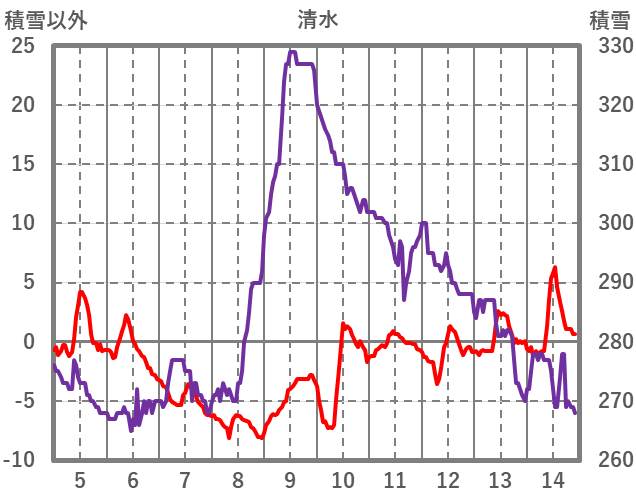 | 日 | 時 | 気温 | 降水 | 風向/風速 | 日照 | 積雪 | 降雪 |