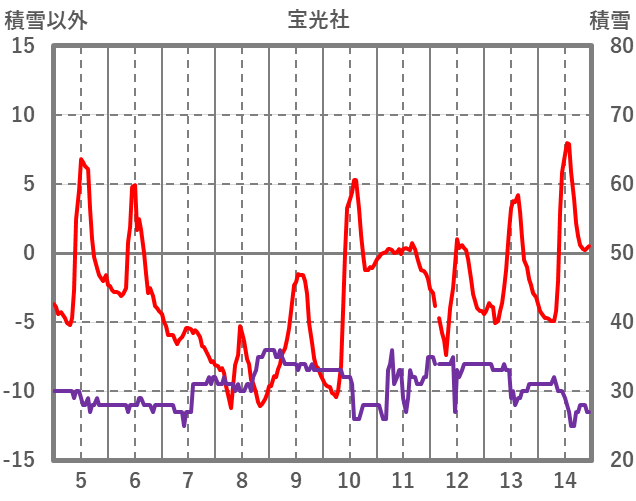| 日 | 時 | 気温 | 降水 | 風向/風速 | 日照 | 積雪 | 降雪 |