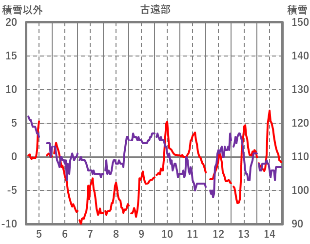 | 日 | 時 | 気温 | 降水 | 風向/風速 | 日照 | 積雪 | 降雪 |