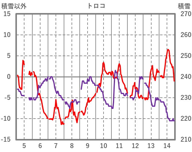 | 日 | 時 | 気温 | 降水 | 風向/風速 | 日照 | 積雪 | 降雪 |