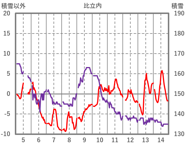 | 日 | 時 | 気温 | 降水 | 風向/風速 | 日照 | 積雪 | 降雪 |