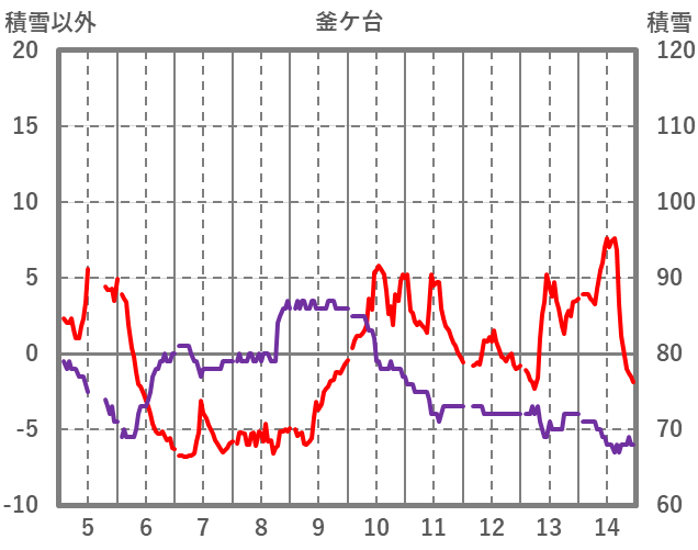 | 日 | 時 | 気温 | 降水 | 風向/風速 | 日照 | 積雪 | 降雪 |