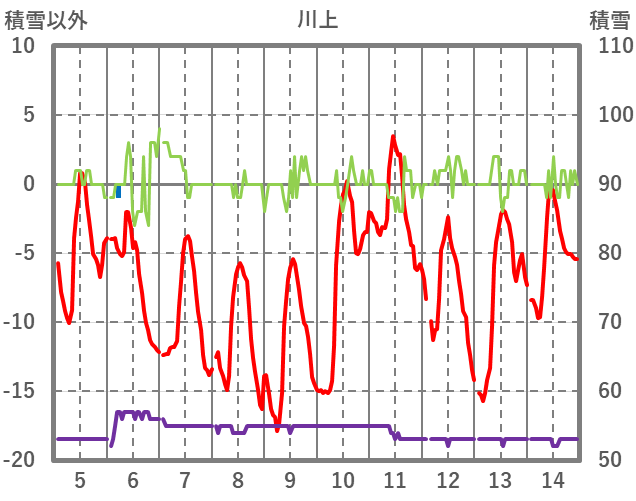 | 日 | 時 | 気温 | 降水 | 風向/風速 | 日照 | 積雪 | 降雪 |