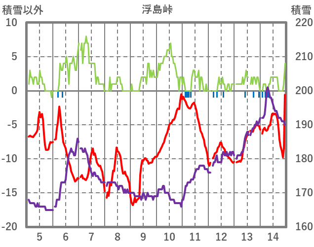| 日 | 時 | 気温 | 降水 | 風向/風速 | 日照 | 積雪 | 降雪 |