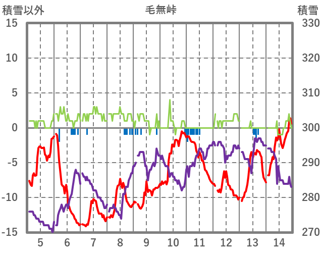 | 日 | 時 | 気温 | 降水 | 風向/風速 | 日照 | 積雪 | 降雪 |
