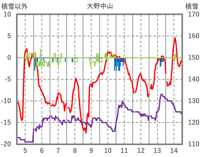 | 日 | 時 | 気温 | 降水 | 風向/風速 | 日照 | 積雪 | 降雪 |