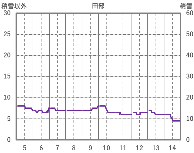 | 日 | 時 | 気温 | 降水 | 風向/風速 | 日照 | 積雪 | 降雪 |