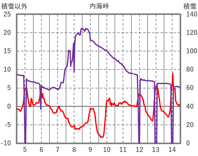 | 日 | 時 | 気温 | 降水 | 風向/風速 | 日照 | 積雪 | 降雪 |