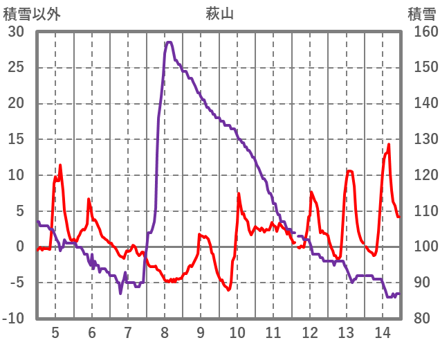 | 日 | 時 | 気温 | 降水 | 風向/風速 | 日照 | 積雪 | 降雪 |