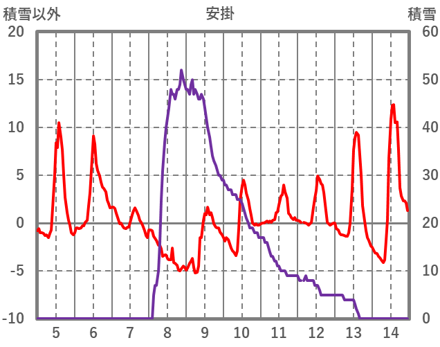 | 日 | 時 | 気温 | 降水 | 風向/風速 | 日照 | 積雪 | 降雪 |