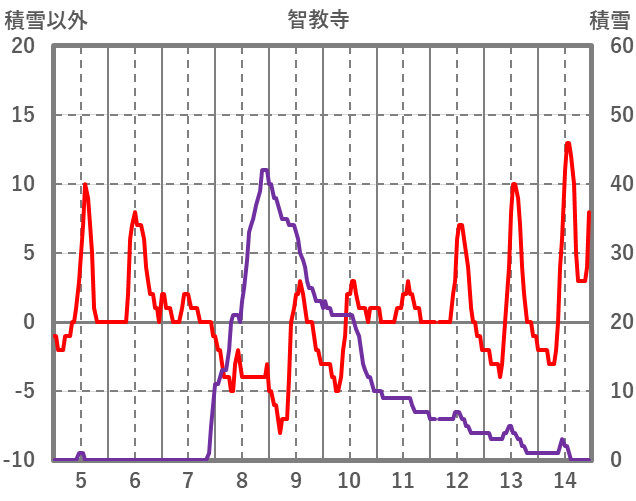 | 日 | 時 | 気温 | 降水 | 風向/風速 | 日照 | 積雪 | 降雪 |