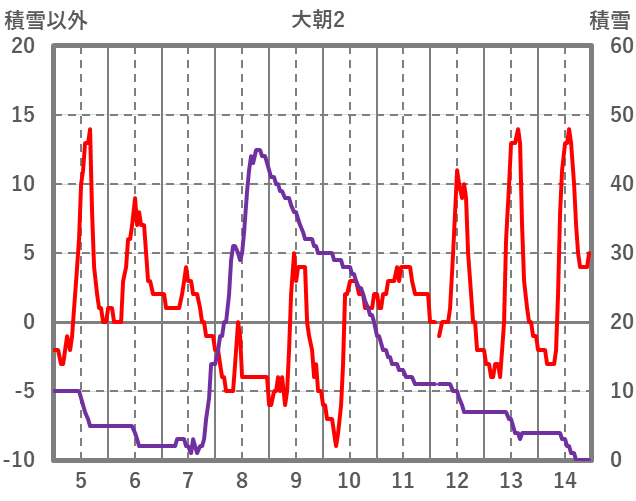 | 日 | 時 | 気温 | 降水 | 風向/風速 | 日照 | 積雪 | 降雪 |