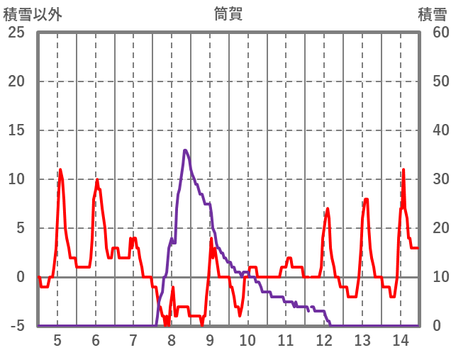 | 日 | 時 | 気温 | 降水 | 風向/風速 | 日照 | 積雪 | 降雪 |