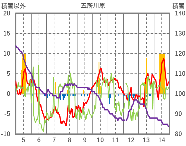 | 日 | 時 | 気温 | 降水 | 風向/風速 | 日照 | 積雪 | 降雪 |