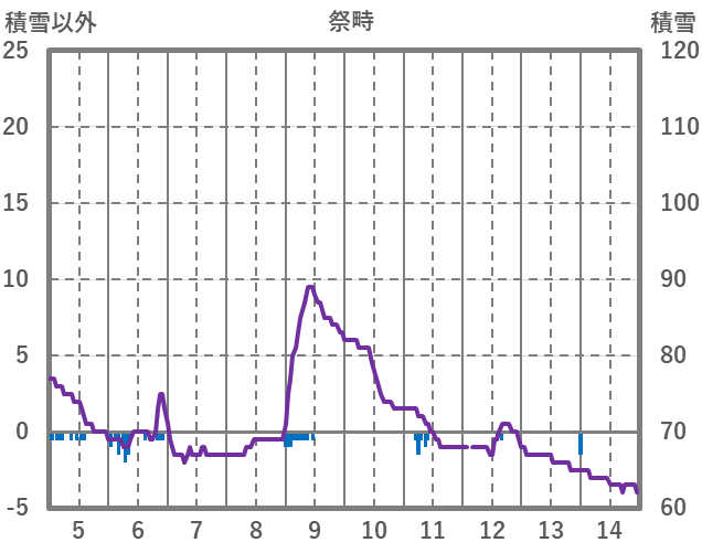 | 日 | 時 | 気温 | 降水 | 風向/風速 | 日照 | 積雪 | 降雪 |