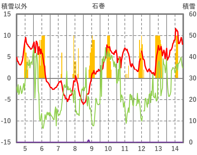 | 日 | 時 | 気温 | 降水 | 風向/風速 | 日照 | 積雪 | 降雪 |