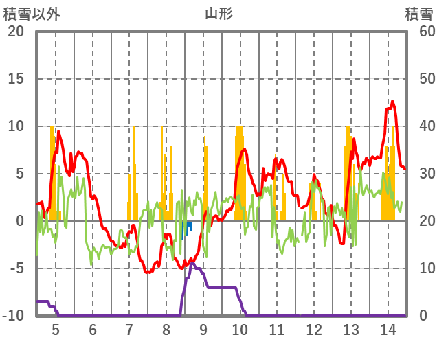 | 日 | 時 | 気温 | 降水 | 風向/風速 | 日照 | 積雪 | 降雪 |