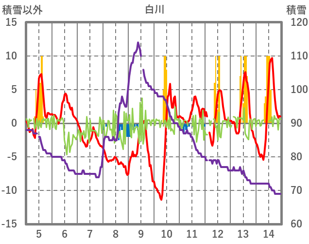 | 日 | 時 | 気温 | 降水 | 風向/風速 | 日照 | 積雪 | 降雪 |