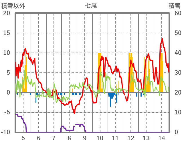 | 日 | 時 | 気温 | 降水 | 風向/風速 | 日照 | 積雪 | 降雪 |